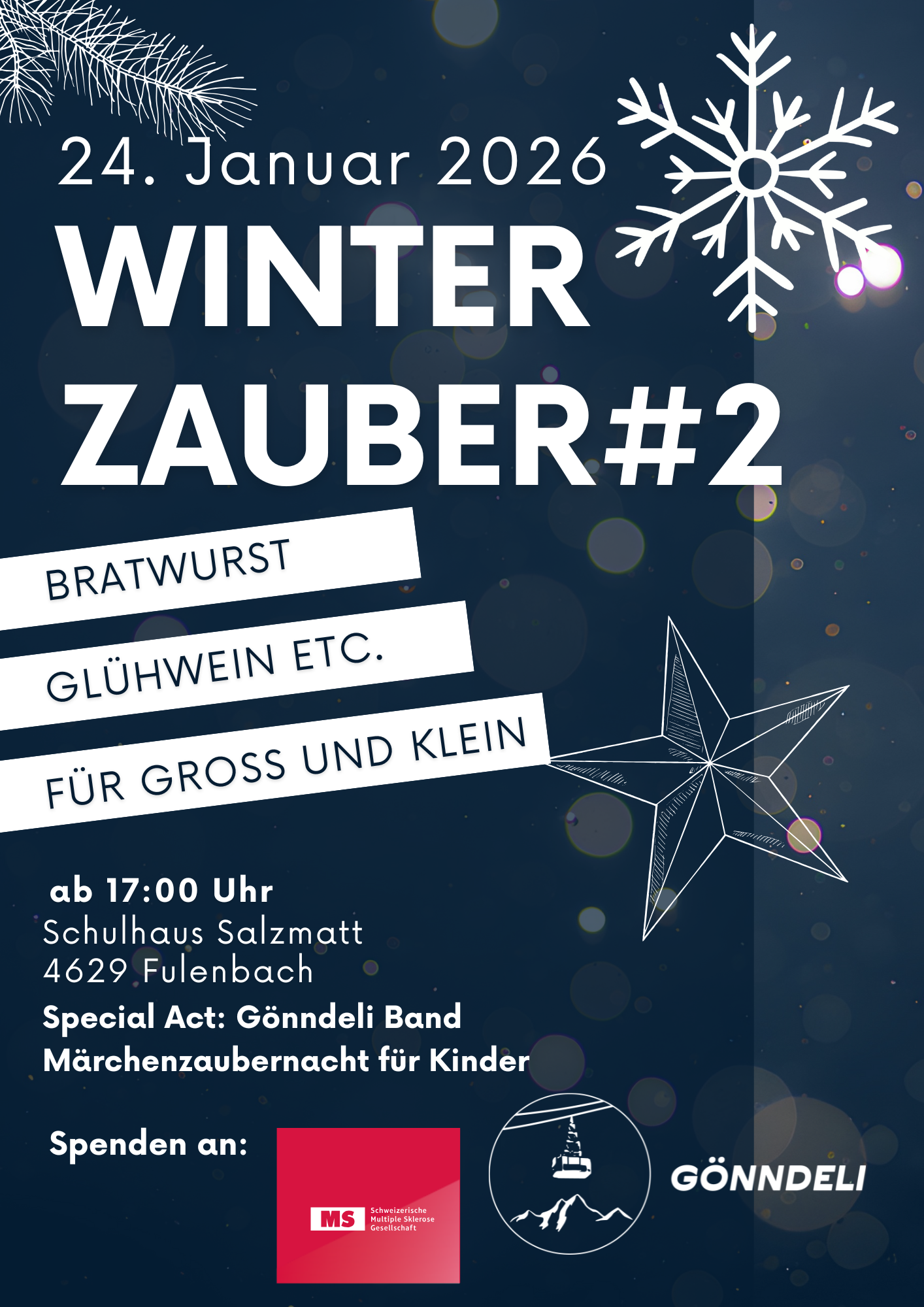 Erlebe mit uns die zweite Version des Winterzaubers. Der Schulhausplatz wird wieder leuchten. Sei dabei und erlebe einen verzauberten Abend.